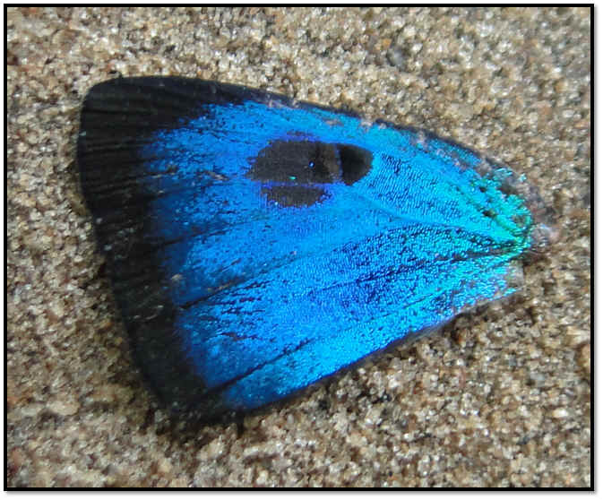 male forewing, dorsal side up, on roadbed |