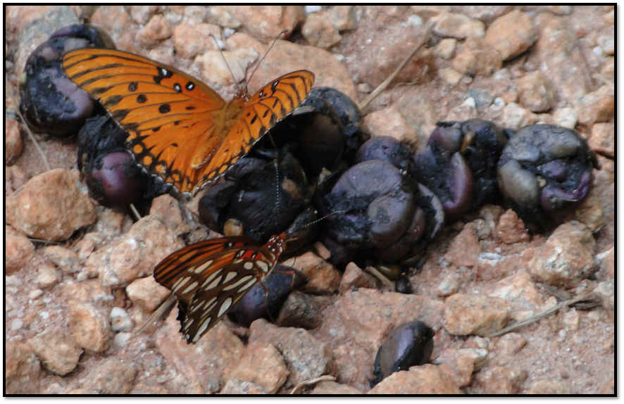 on persimmons, probably regurgitated (by a coyote?) because persimmons are nowhere near ripe in August! |